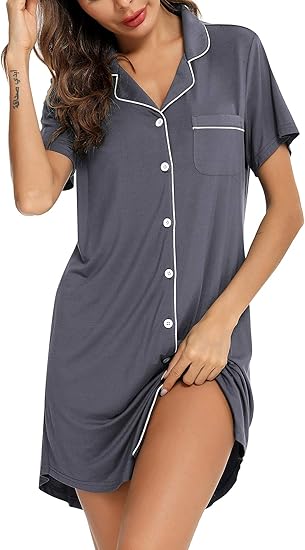 Pajama Nightgown for Women Short/Long Sleeve Button Down Nightwear Top Boyfriend Sleep Shirts Nightdress S-XXL