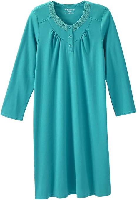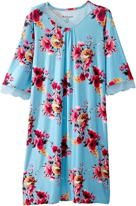 Silverts Open-Back Hospital Gowns for Women – Comfortable, Easy Dressing for Seniors & Patients - Lace Trim 2/3 Sleeve