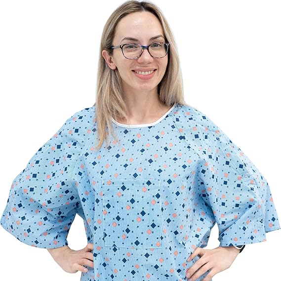 Surgical Recovery Patient Hospital Gown With Internal Pockets for Post-Op Drainage