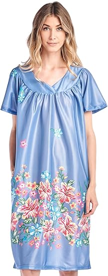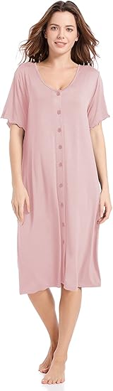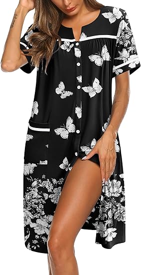Nightgowns for Women House Dress with Pockets Button Down Sleepshirt Short Sleeve Nightshirt Housecoat S-XXXL