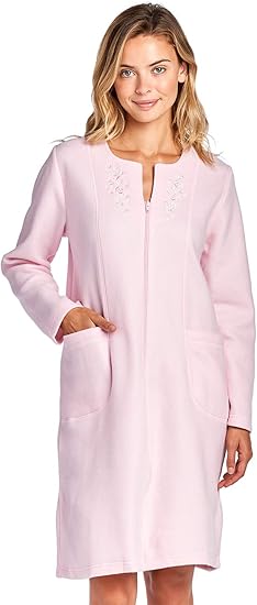 Women's Long Sleeve Zip Up Front Short Fleece Robe