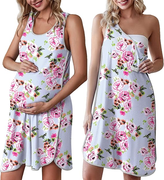 Womens 3 in 1 Nursing Dress Sleeveless Nightdress Summer Maternity Nightgown Nightshirt with Snap Button S-XXL