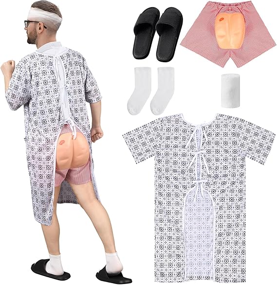 Patient Gown Party Costume Set for Adult Hospital Gown Funny Butt Shorts for Halloween Cosplay Party Men Women