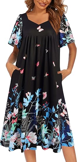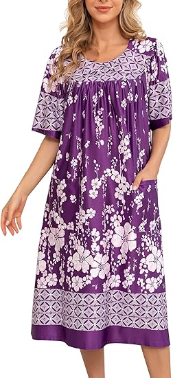 House Dresses for Women with Pockets - Lightweight Breathable Short Sleeve Muumuu & Nightgowns- Women's Dusters