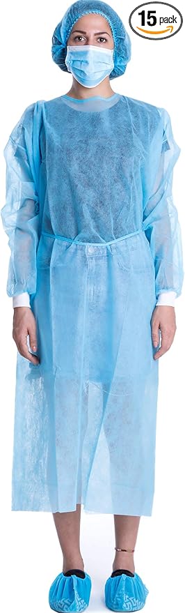 Disposable Isolation Gown Polypropylene Lab Gowns Knit Cuff Long Sleeve 15 Pack