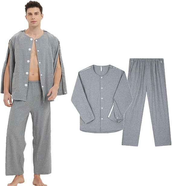 Unisex Post Surgery Shirt Open Back Hospital Shirts for Men Tear Away Snap Surgical Tops Soft Adaptive Clothing