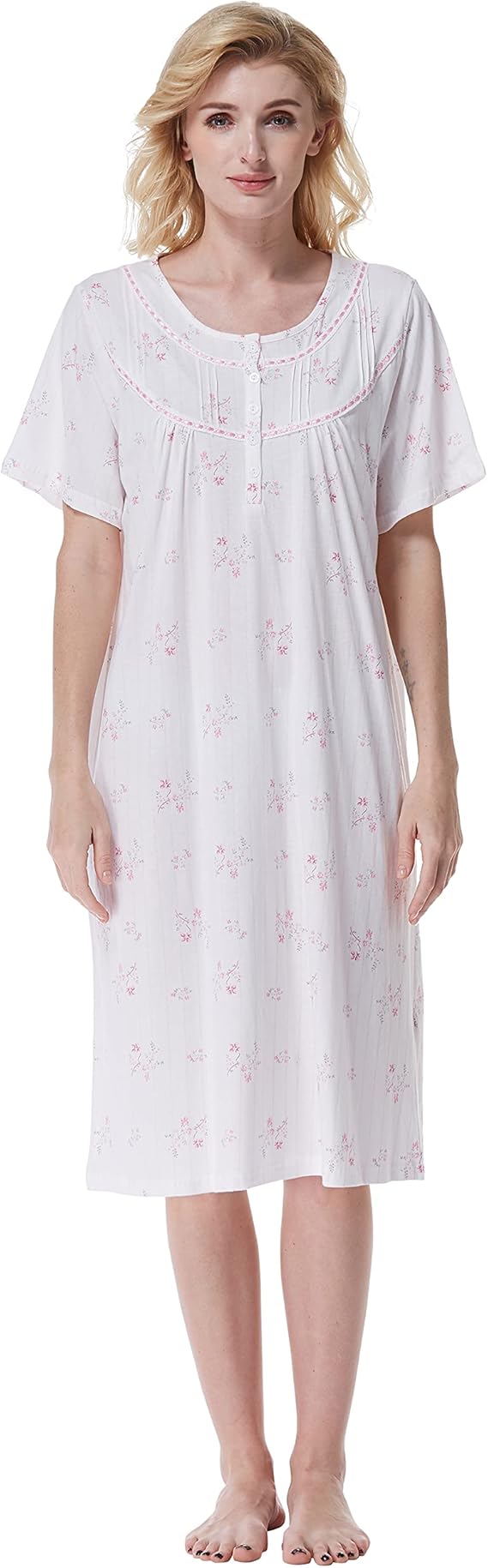 Women Nightgowns, Soft Comfy Lightweight 100% Cotton Short Sleeves Comfy Ladies Nightdress