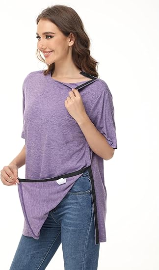 Unisex Snap Post Shoulder Surgery Shirts After Rotator Cuff Surgery Shirt Tear Away Chemo Port Adaptive Clothing