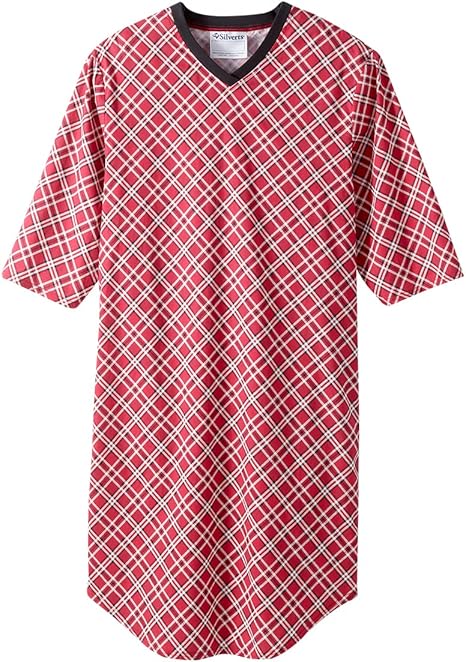 Silverts Mens Adaptive Nightgown - Open Back Cotton Hospital Sleepwear for Elderly - Nightshirt Top for Disabled Seniors